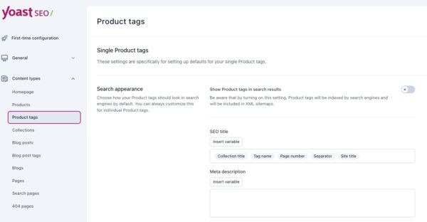 These are the settings for your individual product pages and provide a back-up. So, when you forget to add an SEO title or a meta description for an individual product, they will still look good in the search results. In general, we advise you to use the Google Preview settings in Yoast SEO for the best results.