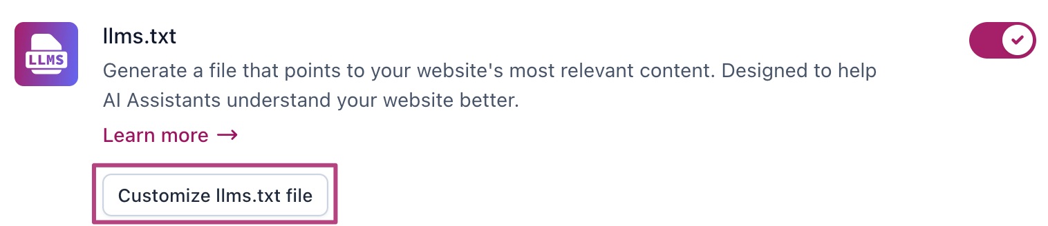 When you’ve enabled your llms.txt file, you can also customize what pages you want to appear in your llms.txt file. Follow the instructions below.