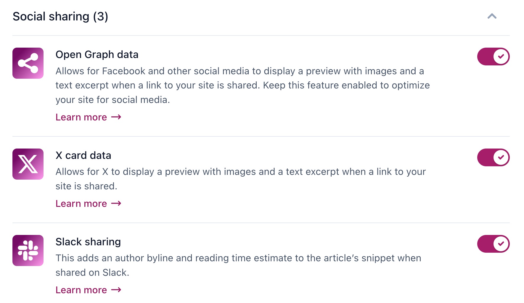 - Toggle the Open Graph data switch to On