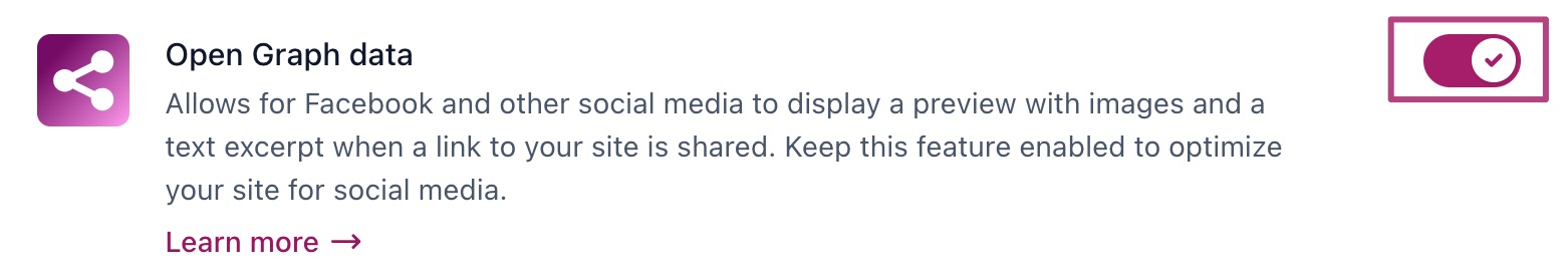 - Under Site features, enable Open Graph data