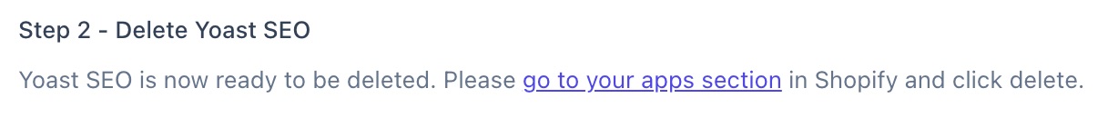 If you run into problems uninstalling Yoast SEO for Shopify, please contact the Yoast SEO for Shopify Support team.