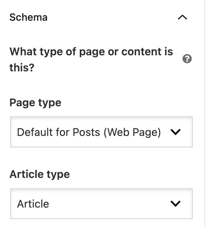 In the Schema settings, you can change the type of content for your page or article. If you have the News SEO for WordPress plugin, you’ll get additional news-related options to choose from.