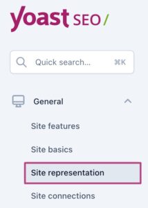 If you also have Yoast Local SEO activated, some of these features are available under Local SEO. A screenshot of the site representation settings overview
