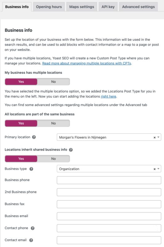 In Yoast SEO 22.0, we’ve expanded our support for Organization structured data. If you have Yoast SEO Premium and the Local SEO add-on, this means that you can add more details about your business, and your website will be better visible to the search engines. All you have to do is enter the information and our Yoast SEO plugin will automatically publish the data in the corresponding Organization schema for your business. In this article, we’ll show you how to add information about your business and where to find the menus to do so.