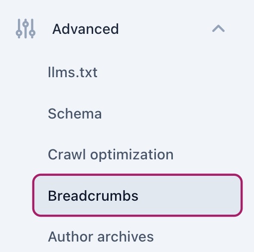 Yoast SEO offers an easy way to add breadcrumbs to your WordPress site. It will add everything necessary to add them not just visible on your site, but get them ready for Google as well. If your theme supports Yoast breadcrumbs, the toggle on the Breadcrumbs settings will already be available. If your theme doesn’t support them, you need to copy a small piece of code into your theme.