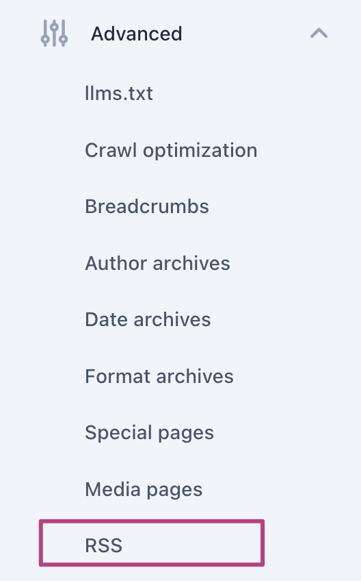 Yoast SEO settings: RSS