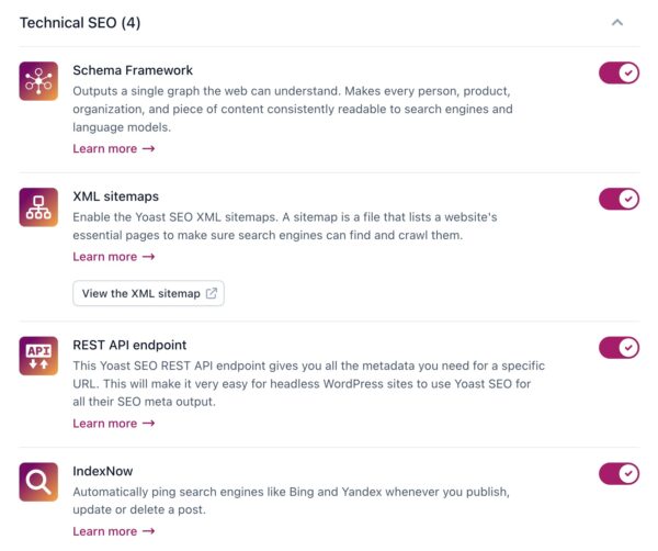 Yoast SEO settings: Site features